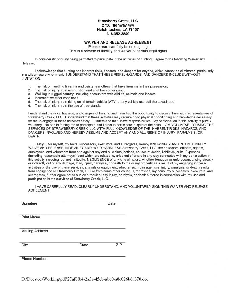 Waiver Of Liability Sample – Free Printable Documents | Waiver – Free Printable Documents