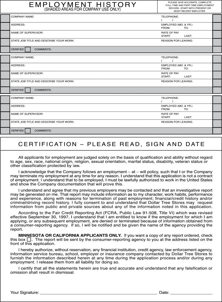 Application: Dollar Tree Application Form – Free Printable Dollar Tree Application Form