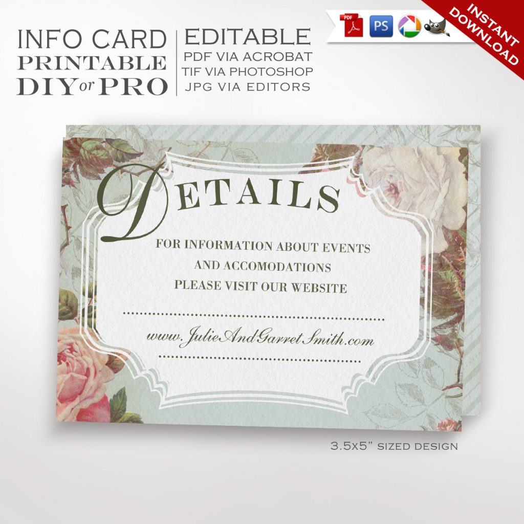Printable Diy French Country Wedding Website Card Template – Free Printable Enclosure Cards