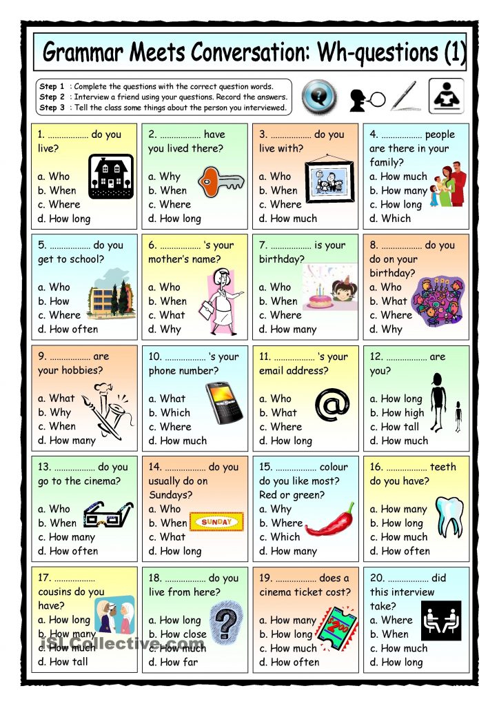 Grammar Meets Conversation: Wh-Questions (1) – Getting To Know You – Free Printable English Conversation Worksheets