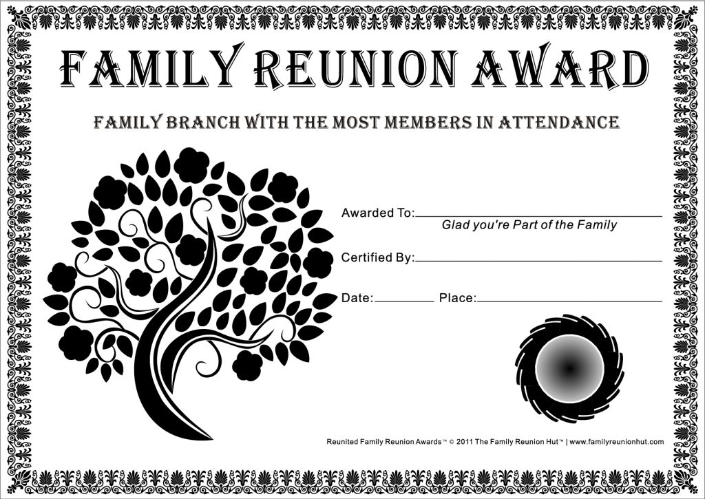 Award Certificates Archives – Family Reunion Hut – Reunion Basics – Free Printable Family Reunion Awards