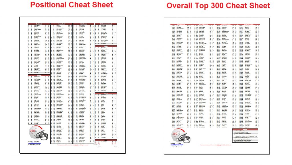 Top 300 List – Fantasy Football 2018 Cheat Sheet – Free Printable Fantasy Football Cheat Sheets
