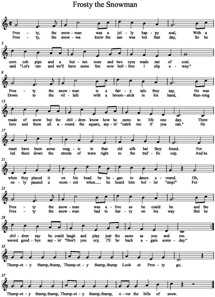Free Printable Frosty The Snowman Sheet Music – If you are seeking for plenty of FREE printables, you have come to the correct location! At Happiness is Home made, we share A lot of totally free printables for those occasions! We have printable games and term lookups, home decor, getaway printables, present ideas (such as cards, tag, and tags!), and in many cases printables for kids! There is some thing for everybody in this free of charge printables collection – simply click around and remain some time!
