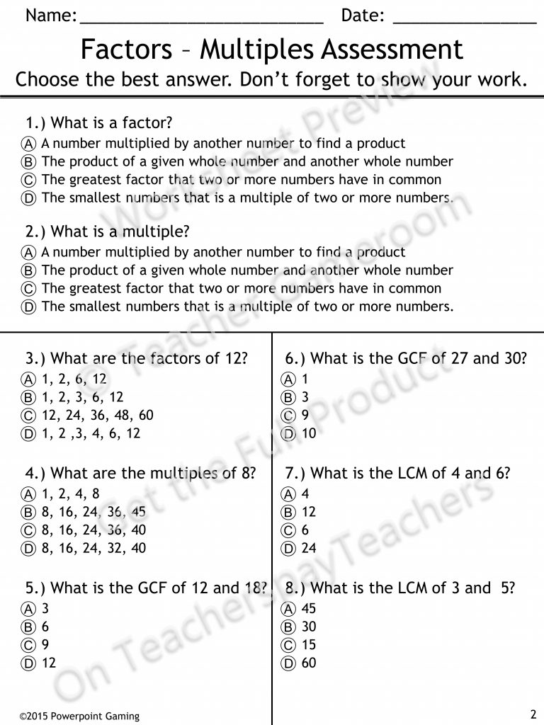 Least Common Multiple And Greatest Common Factor Worksheet Math – Free Printable Greatest Common Factor Worksheets