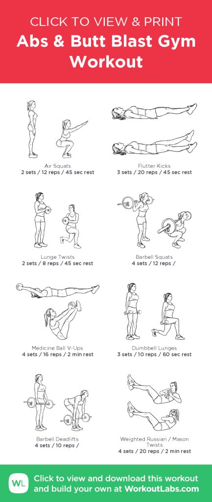 Abs & Butt Blast Gym Workout – Illustrated Exercise Plan Created At – Free Printable Gym Workout Plans