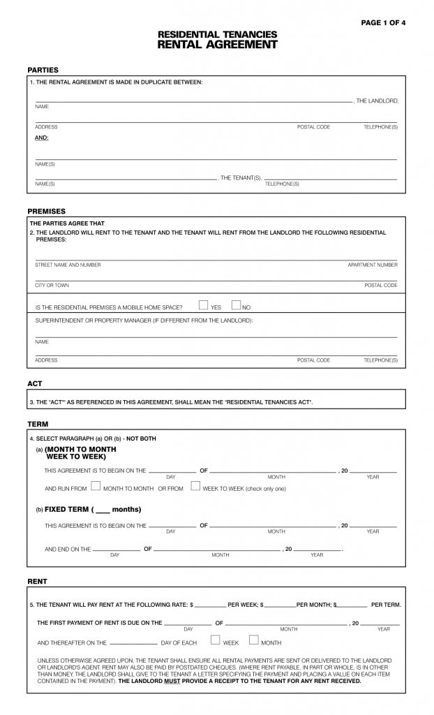 Free Rental Agreements To Print | Free Standard Lease Agreement Form – Free Printable House Rental Application Form