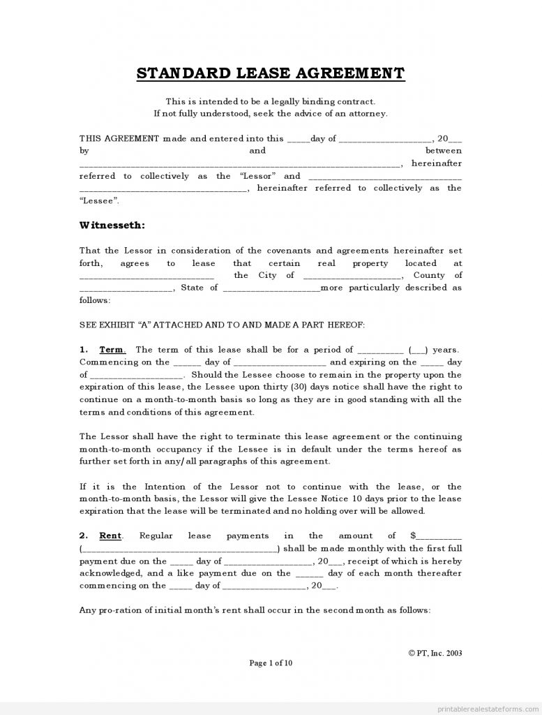 Free Rental Agreements To Print | Free Standard Lease Agreement Form – Free Printable House Rental Application Form