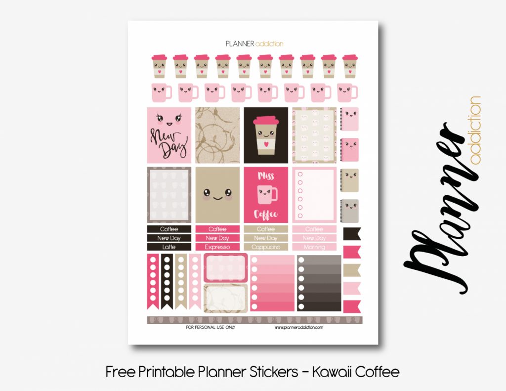 Coffee Kawaii – Planner Addiction – Free Printable Kawaii Stickers