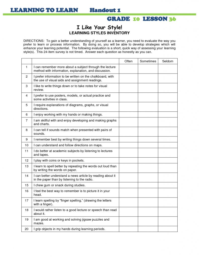 15 Best Images Of Learning Styles Worksheet Printable – Printable – Free Printable Learning Styles Questionnaire