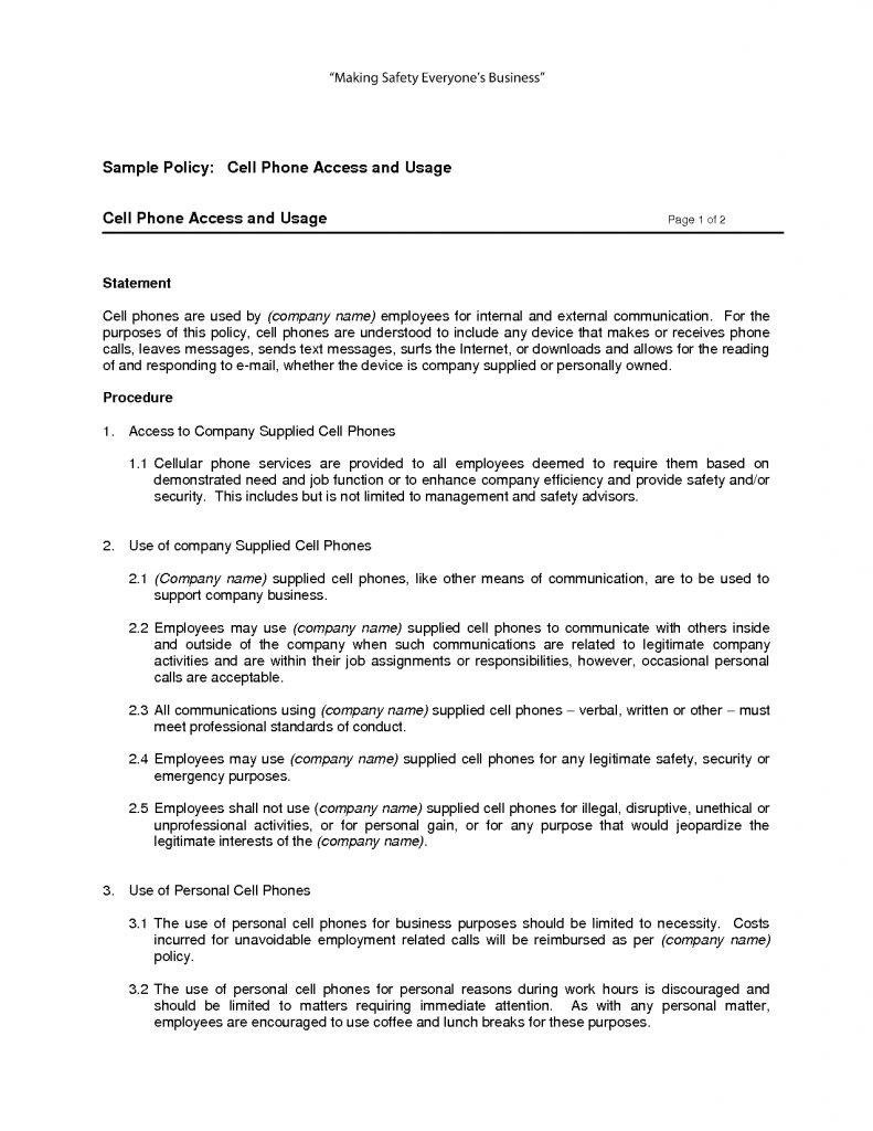 Free Printable Cell Phone Policy Form (Generic) | Sample Printable – Free Printable Legal Documents