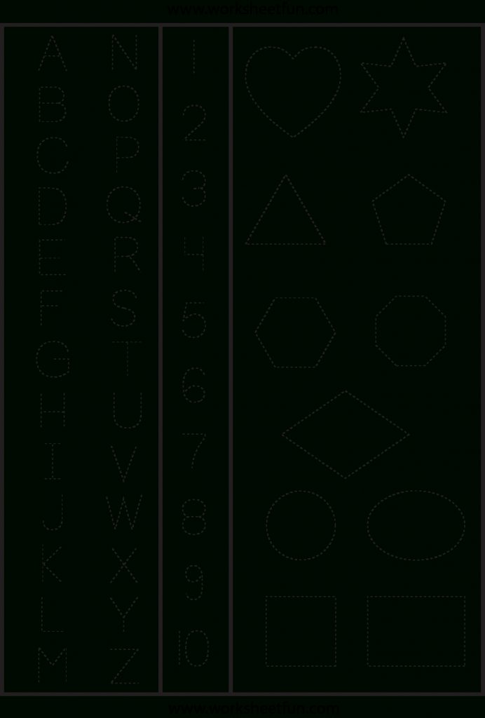 Letters, Numbers And Shapes Tracing Worksheet | Preschool Worksheets – Free Printable Letters And Numbers