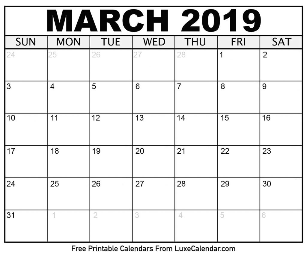 Blank March 2019 Printable Calendar – Luxe Calendar – Free Printable March Activities