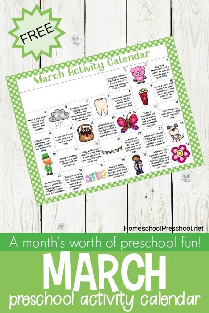 Free Printable March Activity Calendar For Preschoolers | Spring – Free Printable March Activities