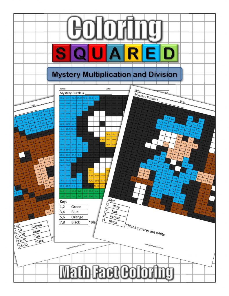 Mystery Multiplication – Coloring Squared – Free Printable Math Mystery Picture Worksheets