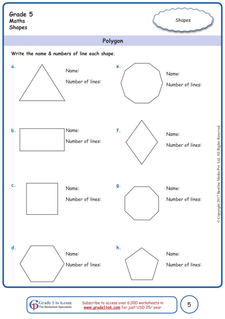 Worksheet Grade 5 Math Polygon | Preschool Math Worksheets, Grade - Free Printable Math Worksheets For Grade 5 Geometry