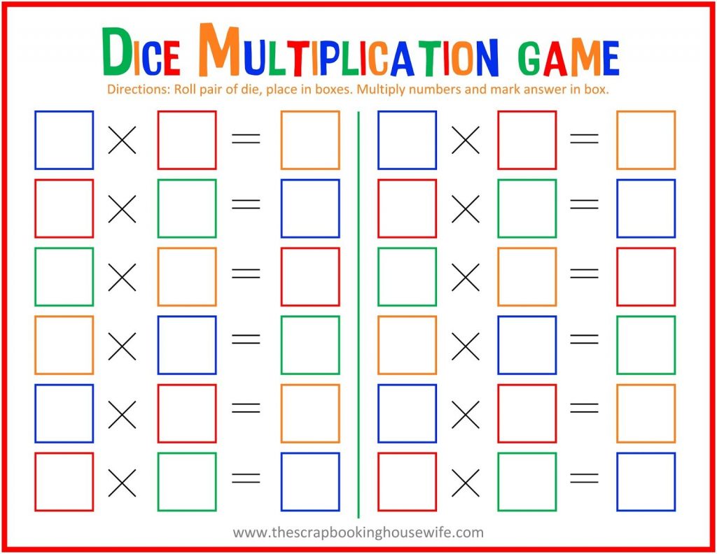 Dice Multiplication Math Game For Kids – Free Printable – Free Printable Maths Games