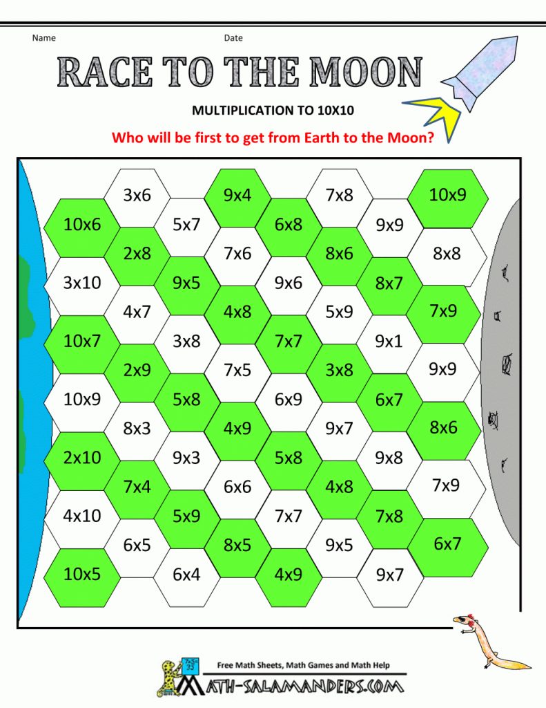 Math Multiplication Games Race To The Moon Multiplication To 10X10 – Free Printable Maths Games