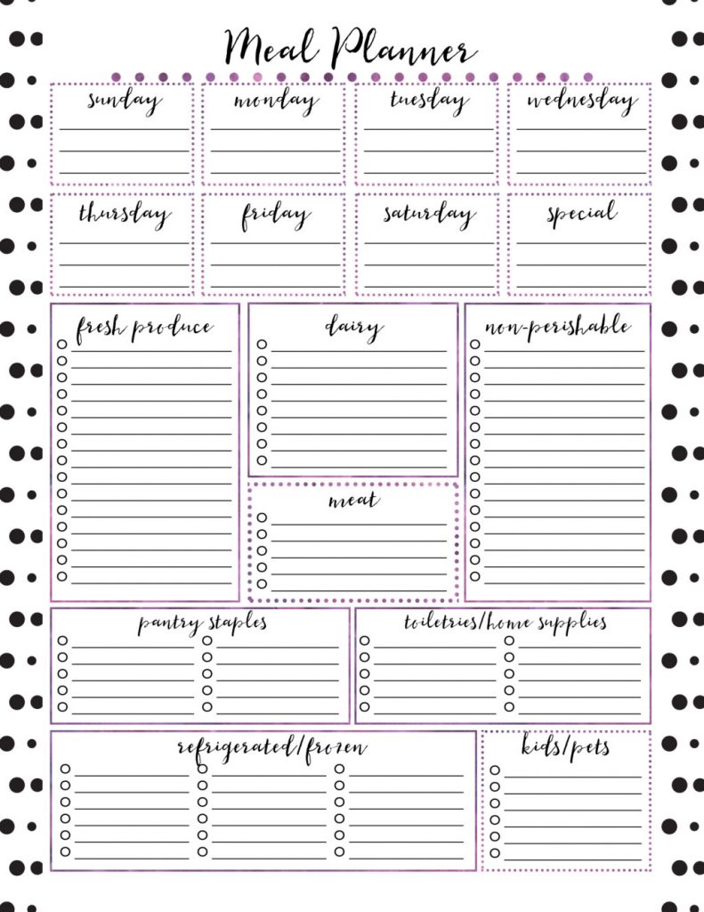 Our web site supplies beautiful printable files that one could customize and printing on your own inkjet or laser light printer. Free Printable Meal Planner