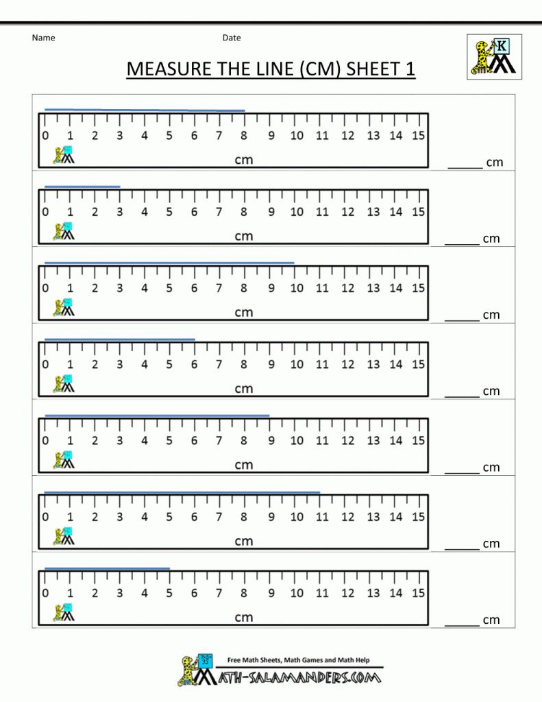 Measuring Worksheets Kindergarten Measure The Line Cm 1 | Learning – Free Printable Measurement Worksheets Grade 1