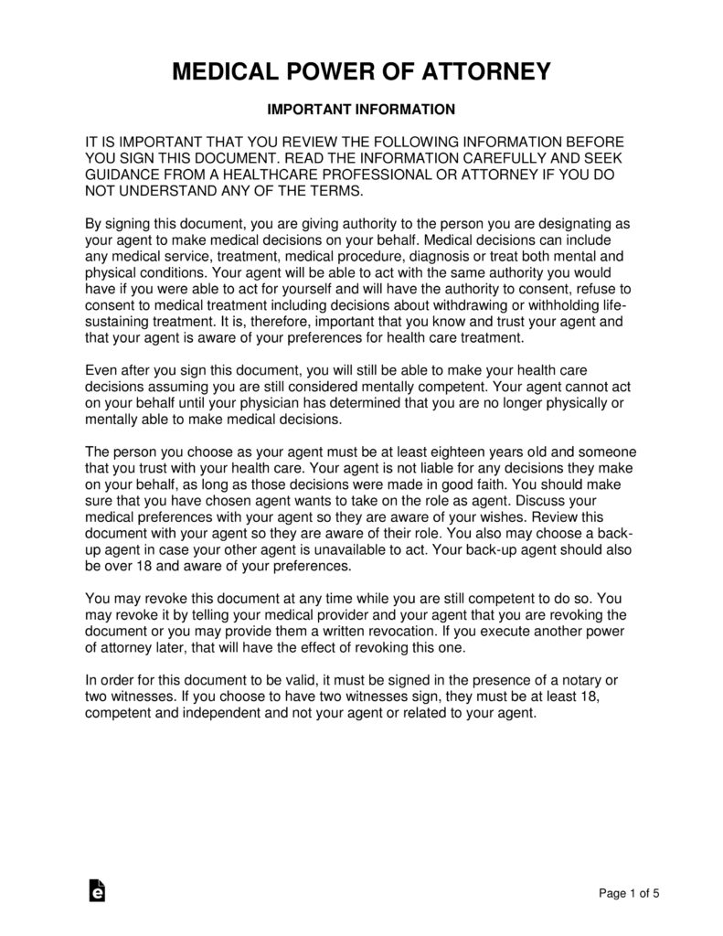 50 Free Power Of Attorney Forms & Templates (Durable, Medical,general) – Free Printable Medical Power Of Attorney