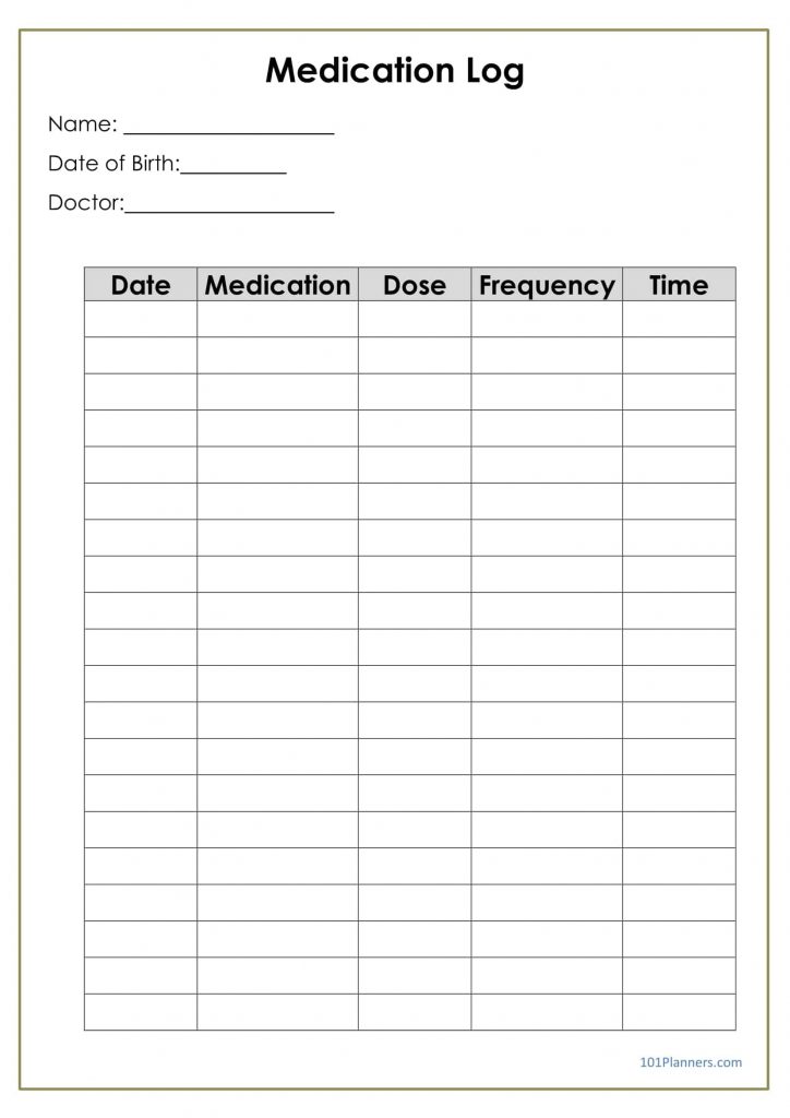 Medication Log – Free Printable Medication Log