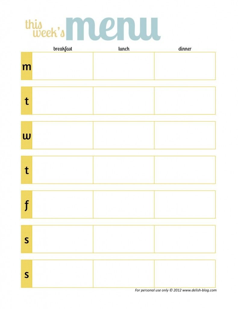 Free Printable Menu Planners -Has One Without Days Of The Week – Free Printable Menu Templates