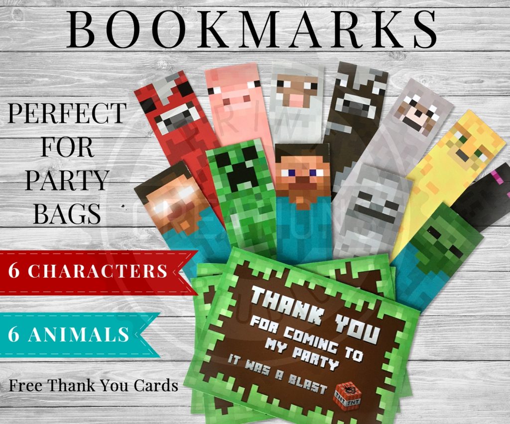Printable Minecraft Bookmarks – Minecraft Party Supplies – Free Printable Minecraft Thank You Notes