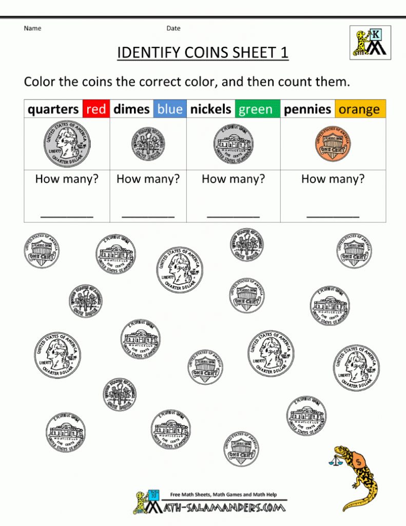 Kindergarten-Printable-Worksheets-Identify-Coins-1.gif (800×1035 – Free Printable Money Worksheets For Kindergarten