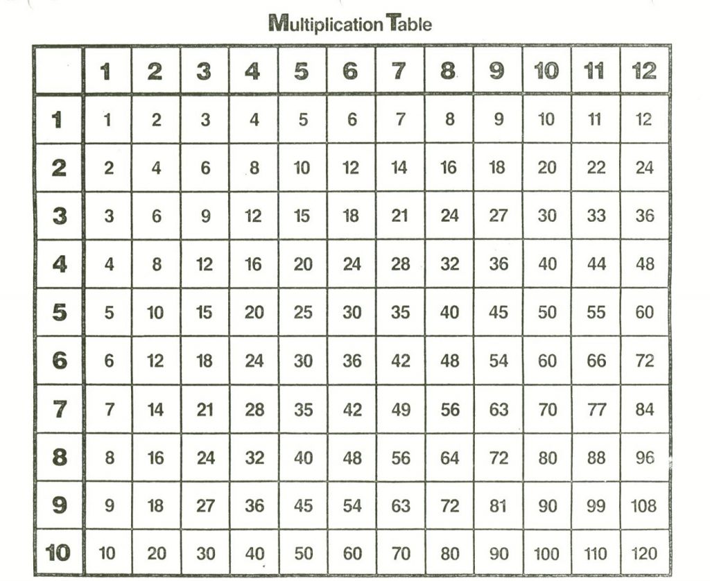 Printable Times Tables Chart 1 12 Free Loving Printable File – Free Printable Multiplication Chart