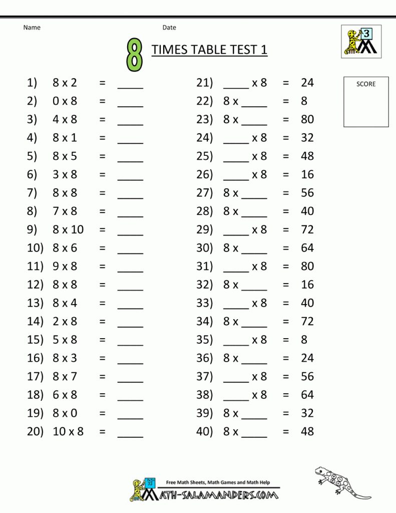 Multiplication Facts Worksheets 8 Times Table Test 1 | Math – Free Printable Multiplication Fact Sheets