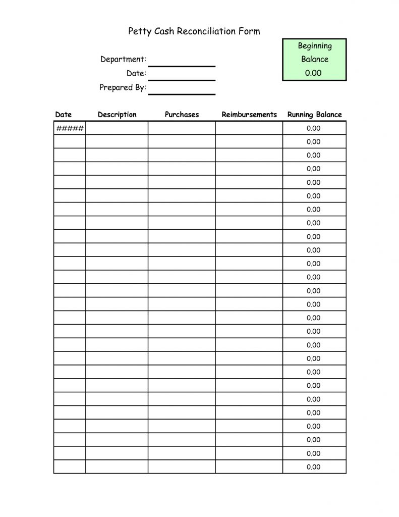 Petty Cash Reconciliation Form Template | Template | Pinterest – Free Printable Petty Cash Template