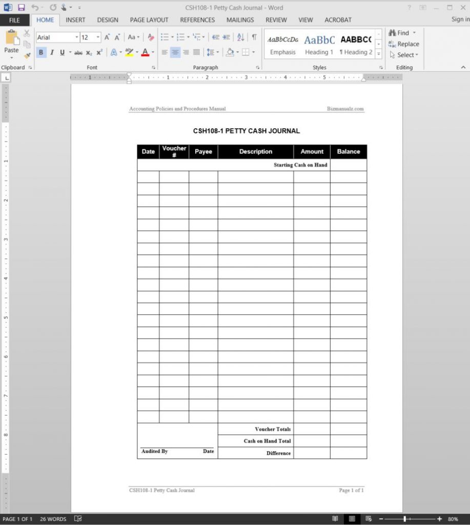 Petty Cash Accounting Journal Template | Bizmanualz – Free Printable Petty Cash Voucher