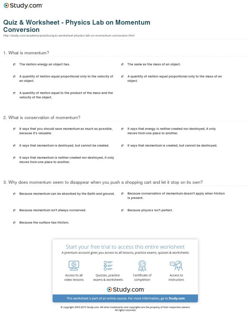 Quiz & Worksheet – Physics Lab On Momentum Conversion | Study – Free Printable Physics Worksheets