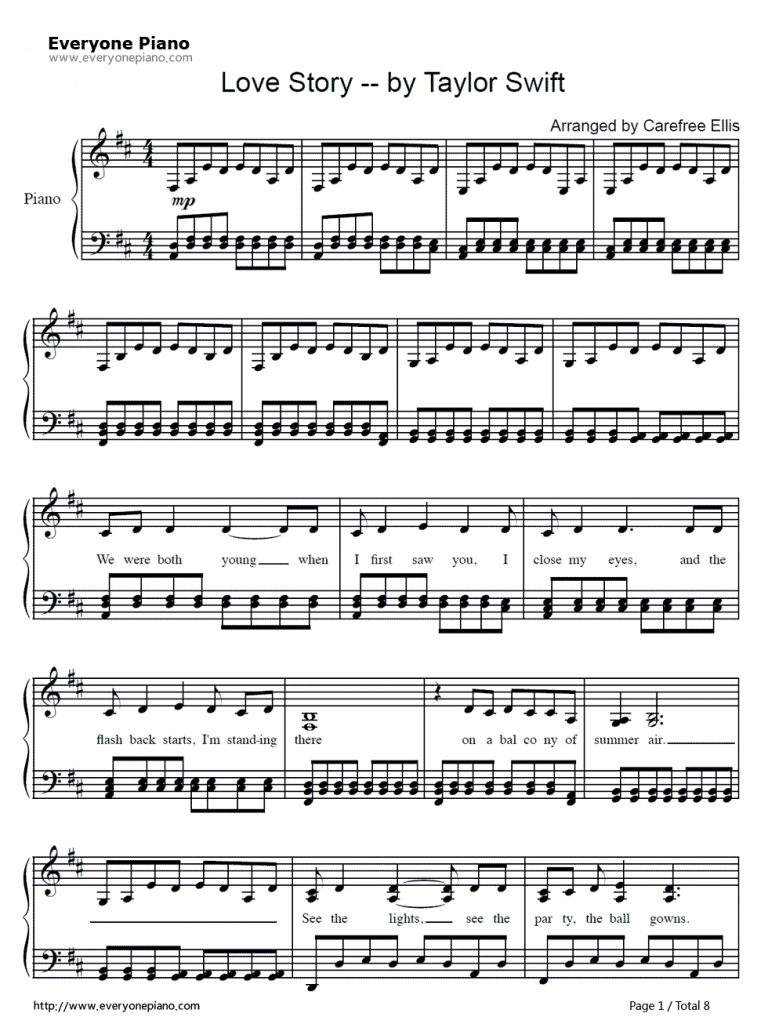 Love Story-Taylor Swift Stave Preview 1 | Piano Sheet Music – Free Printable Piano Sheet Music For Popular Songs