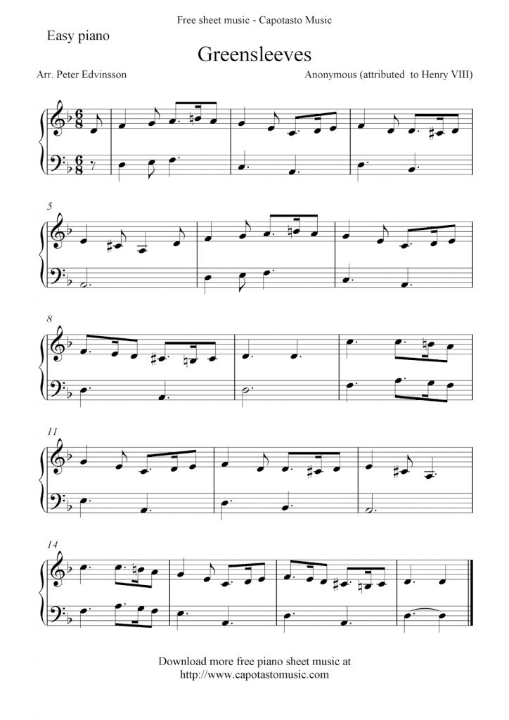 Free Sheet Music Scores: Free #piano Sheet Music Notes, Greensleeves – Free Printable Pictures Of Music Notes