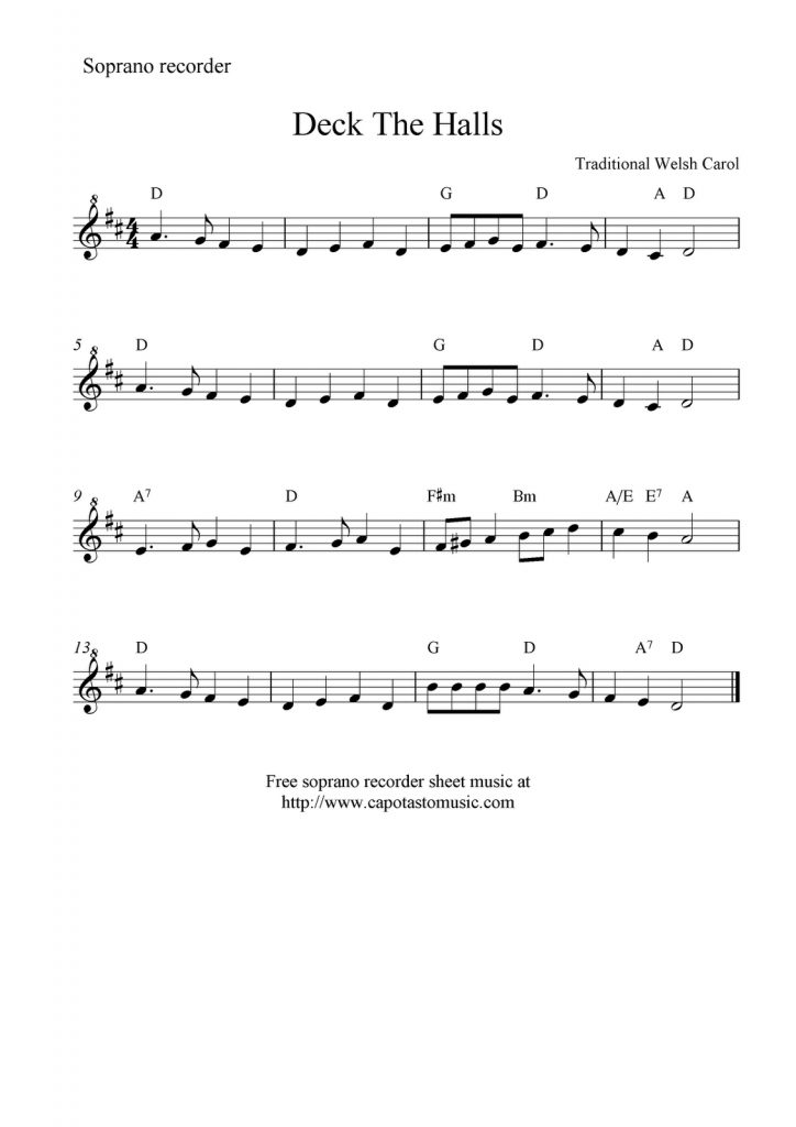 Deck The Halls — Free Recorder Sheet Music | Music Class | Sheet – Free Printable Recorder Sheet Music For Beginners