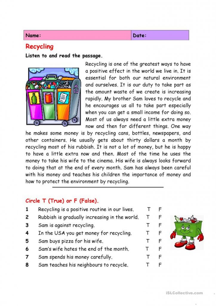 Recycling Worksheet – Free Esl Printable Worksheets Madeteachers – Free Printable Recycling Worksheets