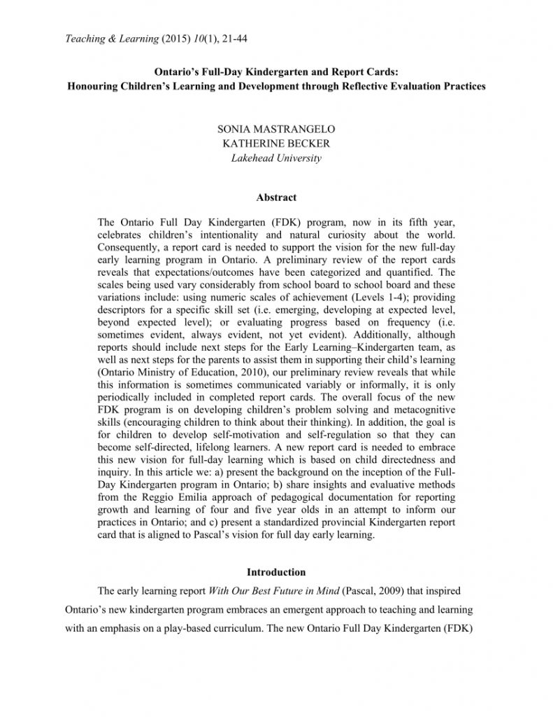 Pdf) Ontario's Full-Day Kindergarten And Report Cards: Honouring - Free Printable Report Card Comments