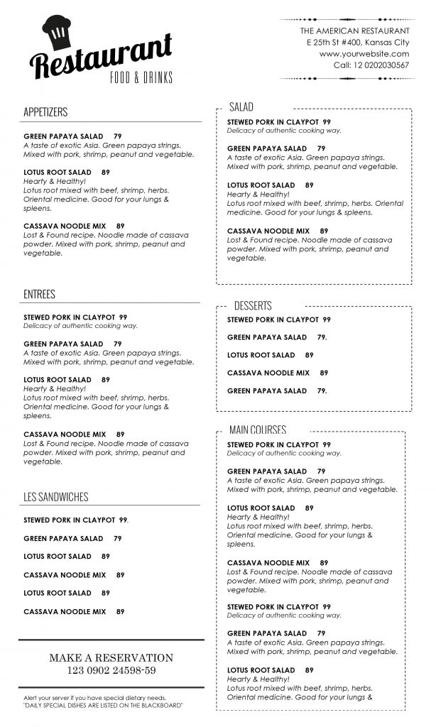 Our website provides stunning computer files that one could modify and produce on the inkjet or laser light printer. Free Printable Restaurant Menu Templates
