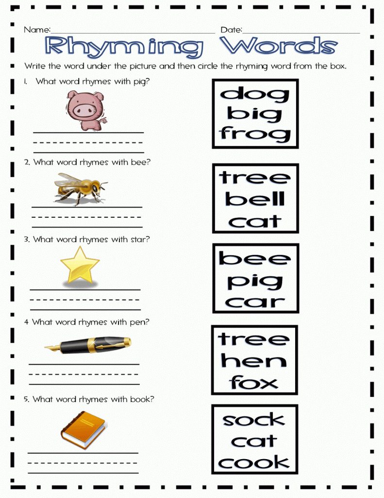 Kindergarten Rhyming Words Worksheet – Free Kindergarten English – Free Printable Rhyming Words