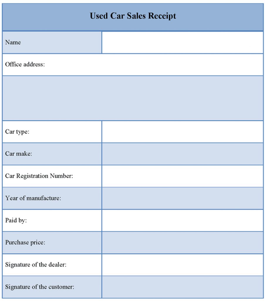 Free Printable Sales Receipt Form Template Pdf Allwaycarcarecom Used – Free Printable Sales Receipt Form