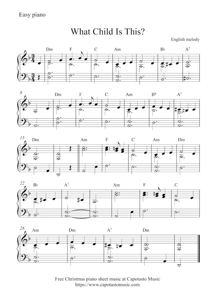Free Easy Christmas Piano Sheet Music | What Child Is This? - Free Printable Sheet Music For Piano