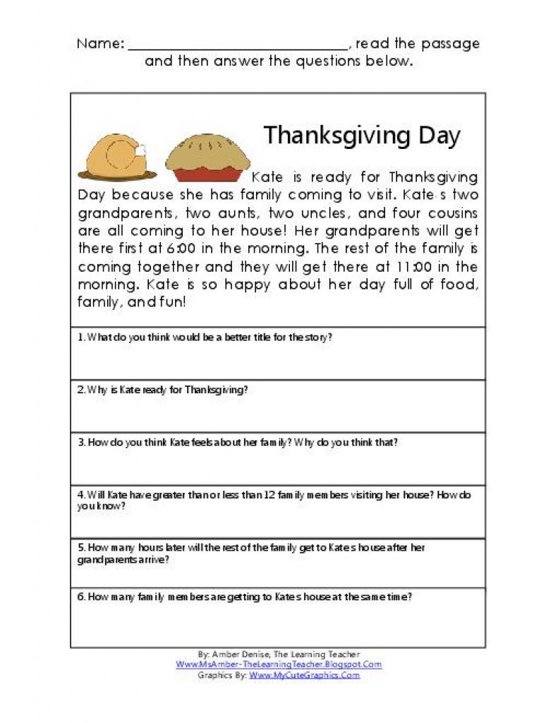 Thanksgiving Reading & Math Comprehension Passage | Teacherlingo – Free Printable Short Stories For Grade 3