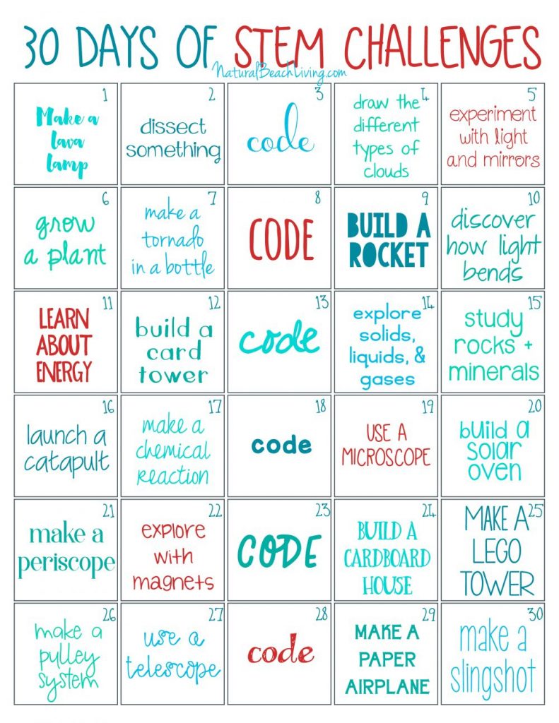 30 Days Of Stem Activities – Stem Challenge – Natural Beach Living – Free Printable Stem Activities