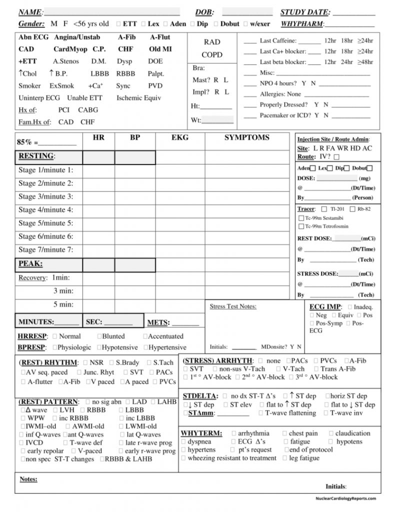 Printable Stress Test Worksheets & (Nuclear) Cardiology Lab – Free Printable Stress Test