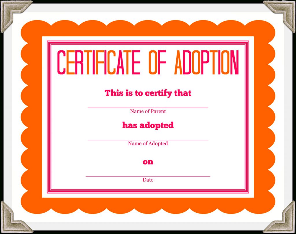 Adoption Certificate Template Fast Pet Adoption Certificate For The – Free Printable Stuffed Animal Adoption Certificate