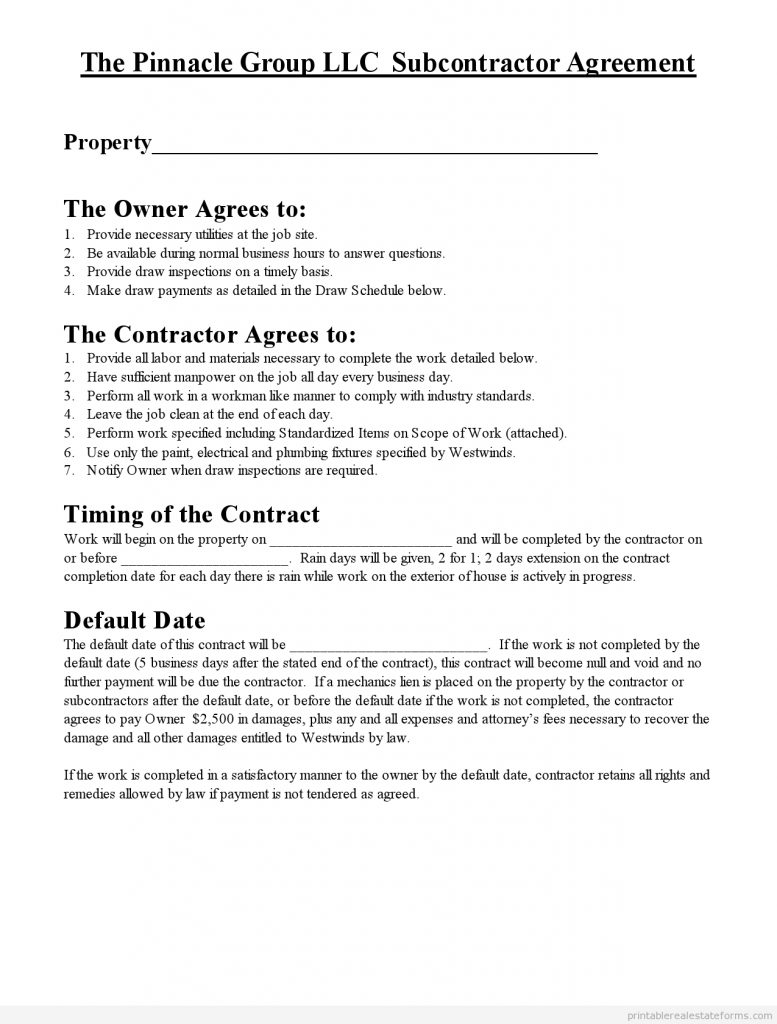 Free Printable Subcontractor Agreement Form | Printable Real Estate – Free Printable Subcontractor Agreement