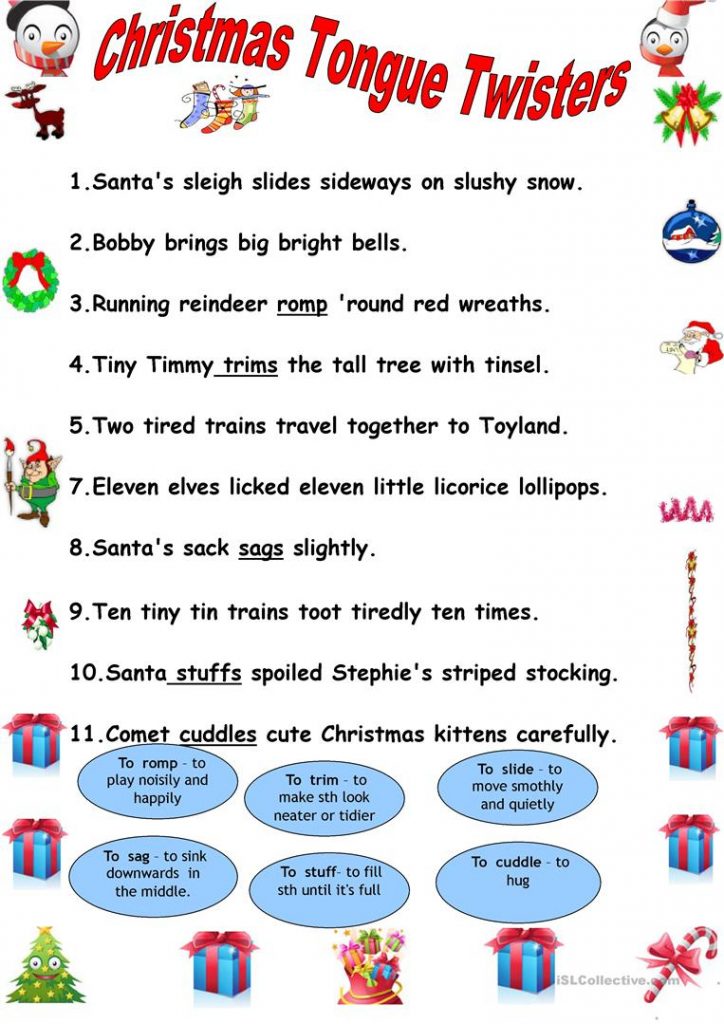 Christmas Tongue Twisters. Worksheet – Free Esl Printable Worksheets – Free Printable Tongue Twisters