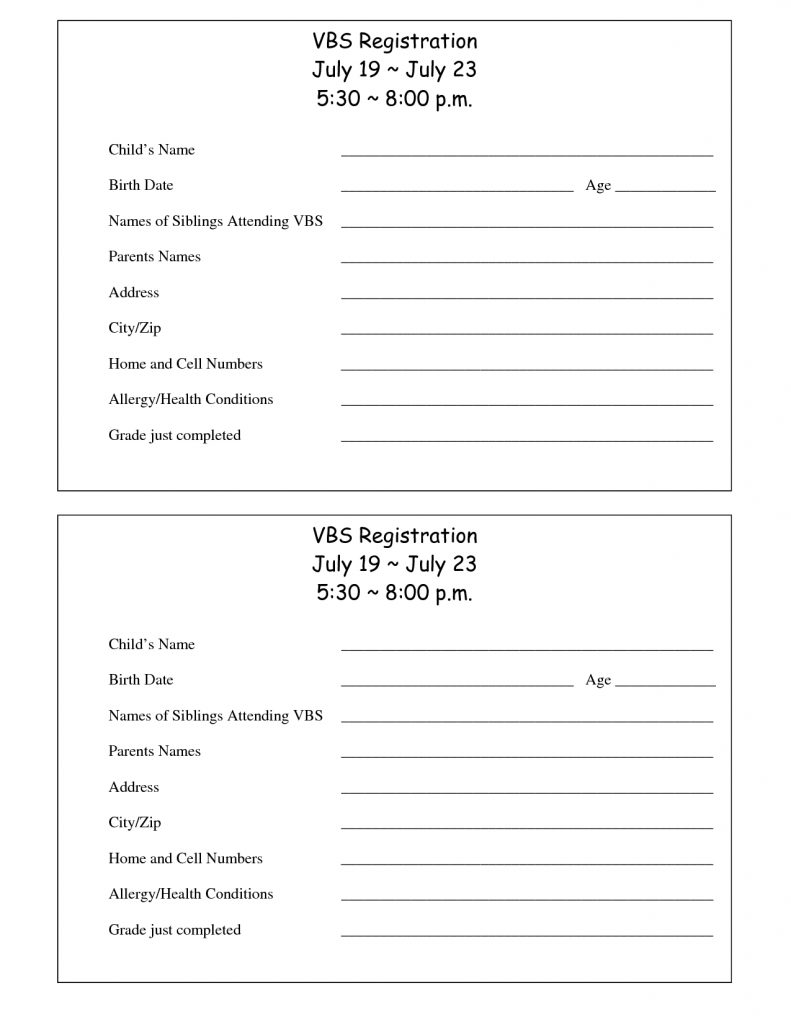 Printable Vbs Registration Form Template | Conference | Bible School – Free Printable Vacation Bible School Materials