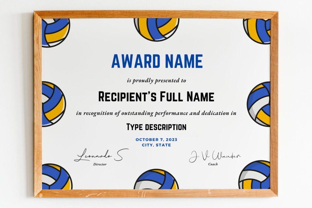 Free Printable Volleyball Certificates Awards – If you are seeking for plenty of Free of charge printables, you have can come off to the right spot! At Joy is Selfmade, we share Plenty of free printables for many occasions! We have printable online games and phrase lookups, decor in your home, getaway printables, gift ideas (which include cards, tags, and labeling!), and also printables for children! There is something for all with this totally free printables series – just click around and stay awhile!